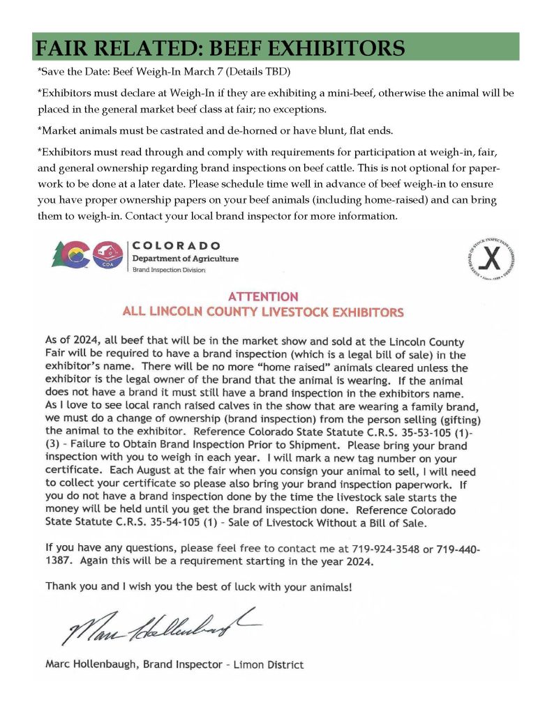4-H Information, Beef Weigh-In Brand Paperwork & Livestock Market Chart Reminders