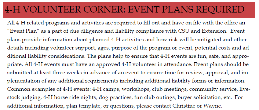 4-H Volunteer Corner: Event Plans Required