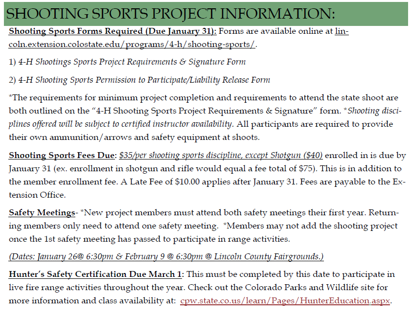 Shooting Sports Project Information-’26
